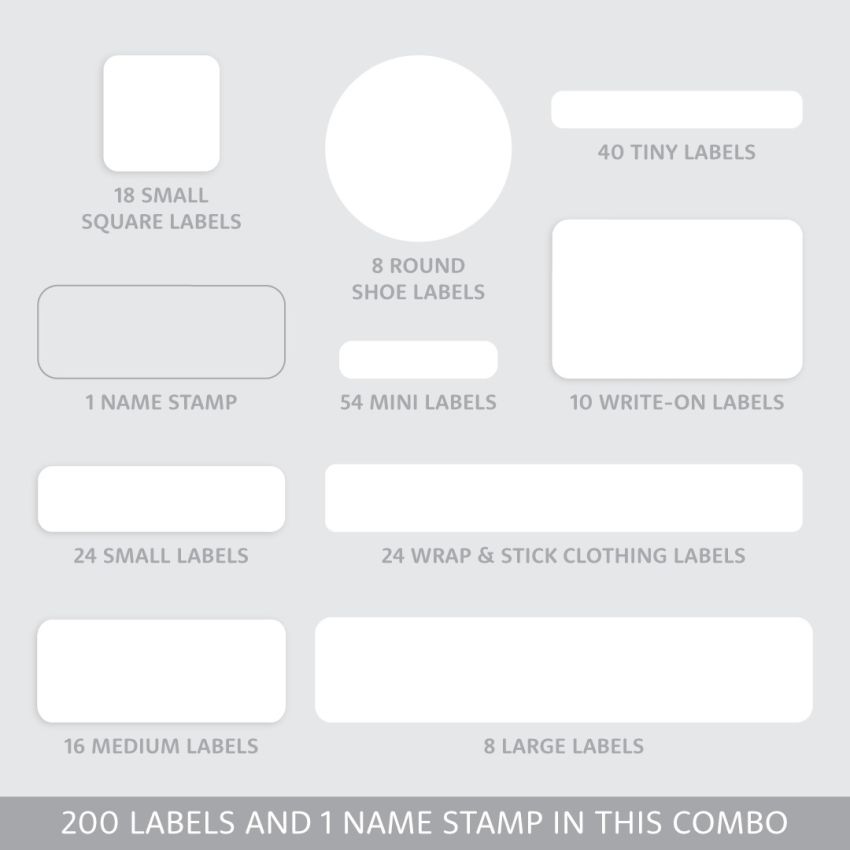 Our new Name Label & Stamp Combo Pack is the ultimate labelling solution for daycare and school. With 200 name labels plus a premium clothing Name Stamp (yes, with stamp pad included!), you can label everything your kid owns in minutes!