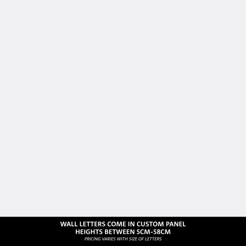 Wall Letter sizes: custom text panel heights between 5cm-58cm. Please note: width calculation is an estimate, Contact us here if you require a specific size.